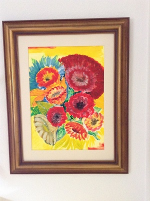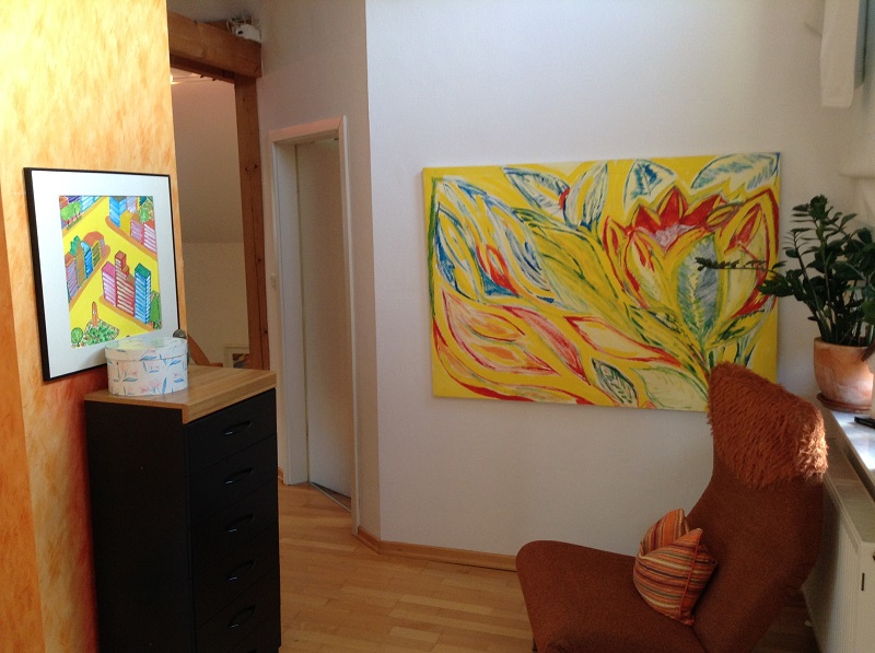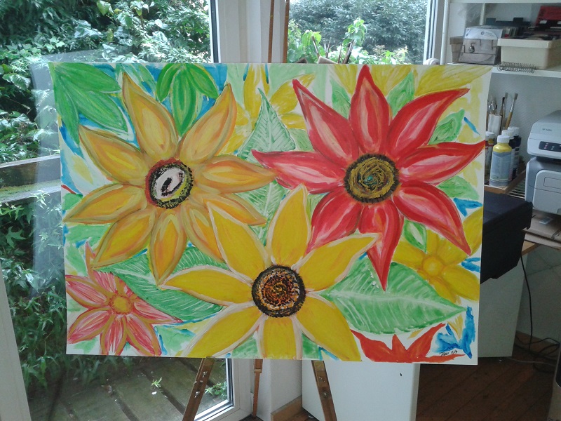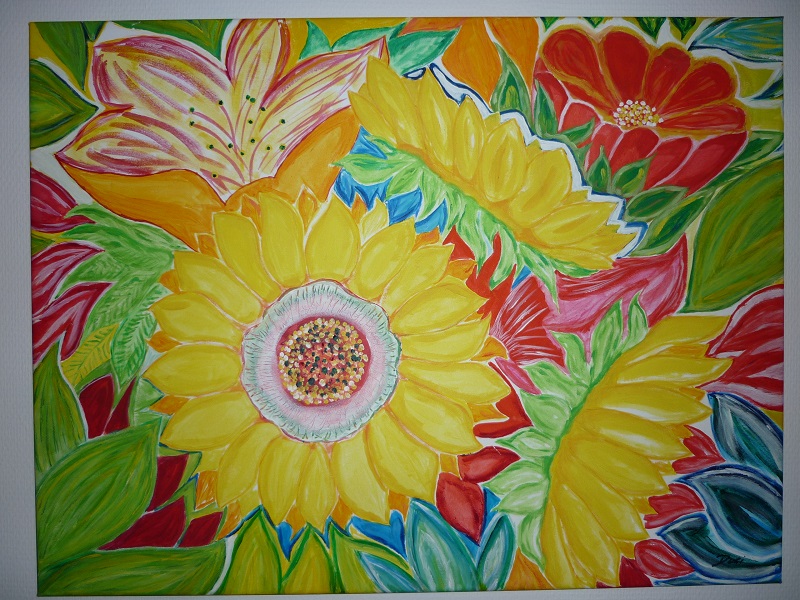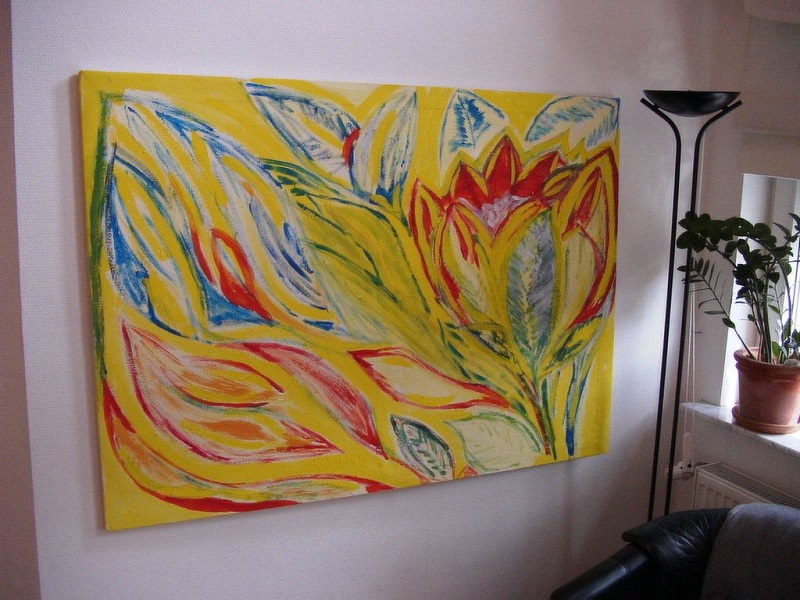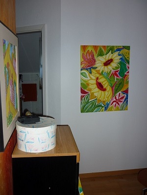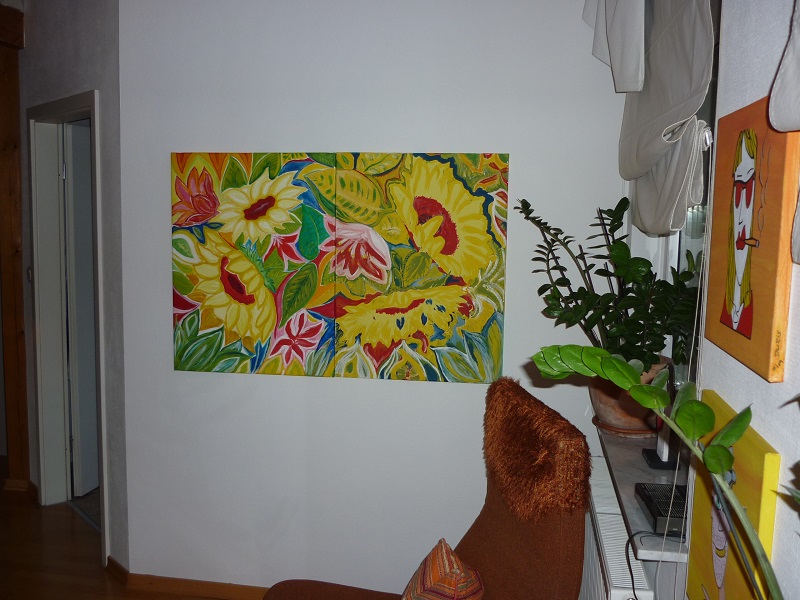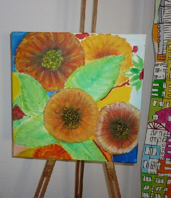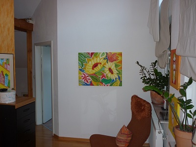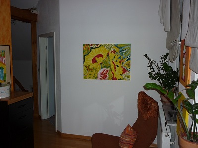 Blume_2 + Blume_3 84x64 Leinenwand Die beiden Blumenbilder sind jeweils in etwas unterschiedlichen Stilen gemalt, können jedoch auch zu einem grösseren Bild zusammen gesetzt werden. |