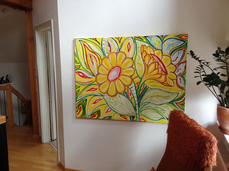 Handgemalte Blumen aus Acryl Blumen eignen sich besonders gut als Designelemente an der Wand. Nicht um sonst sind frische Blumen Schmuckteile fast jeder Feier, Ausstellung und sind als Dekoration in fast jeder Wohnung zu finden. Blumen behalten die Identität, auch wenn man die Farben und Darstellungsfreiheit ausreitzt. |