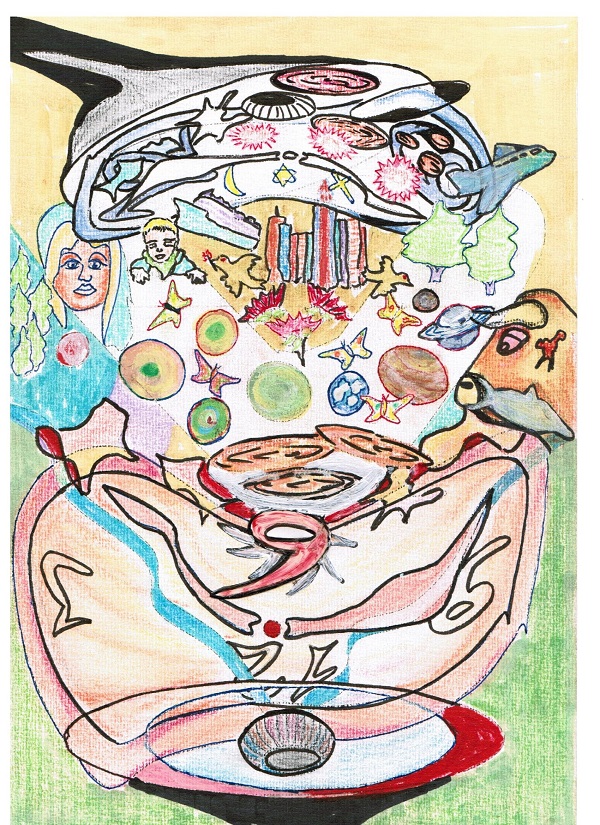 Bang" Urknal - Zeitgeburt "6" - Weltall/Galaxi - Planeten - Lebewesen - Inteligenz - Ende oder Tunnel Normaler Weise bin ich der Meinung, dass man Kunst nicht erklären sollte. Es ist nicht wichtig was der Künstler denkt, sonder was der Betrachter sieht. Bedarf die Kunst erst eine Erklärung, muss man etwas falsch gemacht haben. |